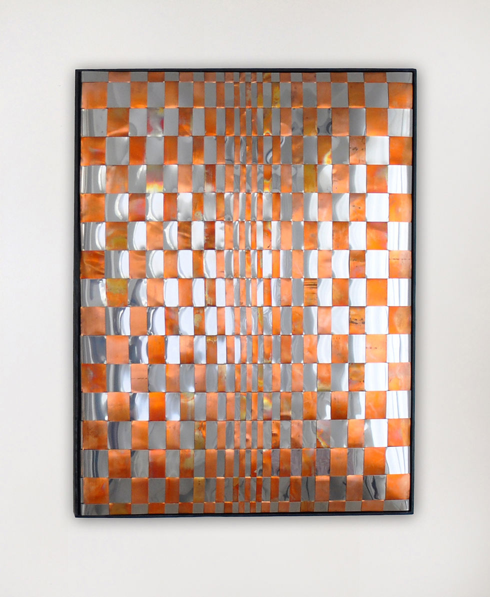 Through handcrafted weaving of two contrasting metals, Loellmann creates compositions that balance structure and fluidity. Each metal reacts uniquely to air, moisture, and light, developing natural patinas that become part of the work’s living quality. The Woven Metals series explores movement, change, and the beauty of imperfection — engaging with time as a sculptural force beyond control.