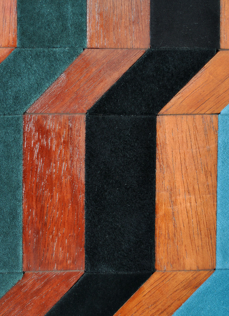 Inspired by architectural patterns found in everyday environments — especially floors and walls — this series transforms familiar motifs into quiet, refined compositions. Geometric clarity meets organic materiality as contrasting textures and surfaces create subtle tension. Each work encourages viewers to slow down and explore what lies beneath the surface — between the constructed and the felt.